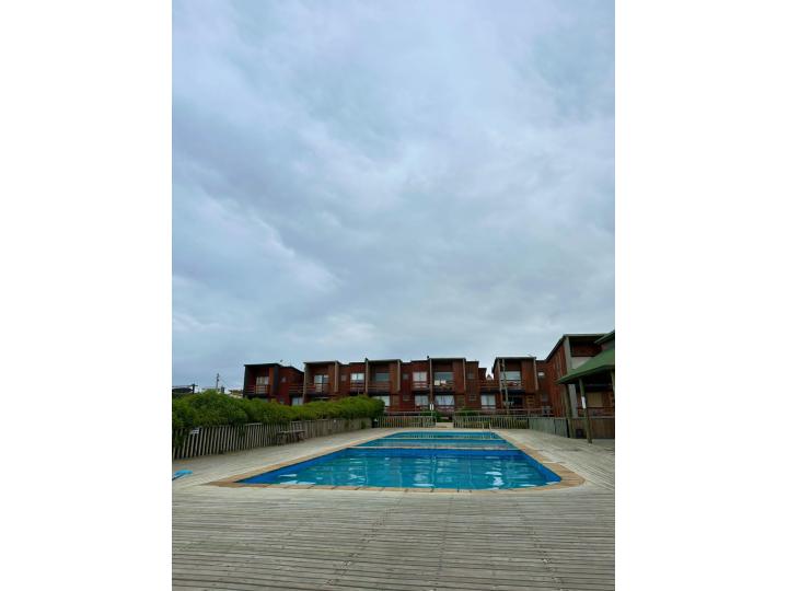 El condominio cuenta con *acceso directo a la playa*, además de espacio comunes como lavandería, piscina, quincho.