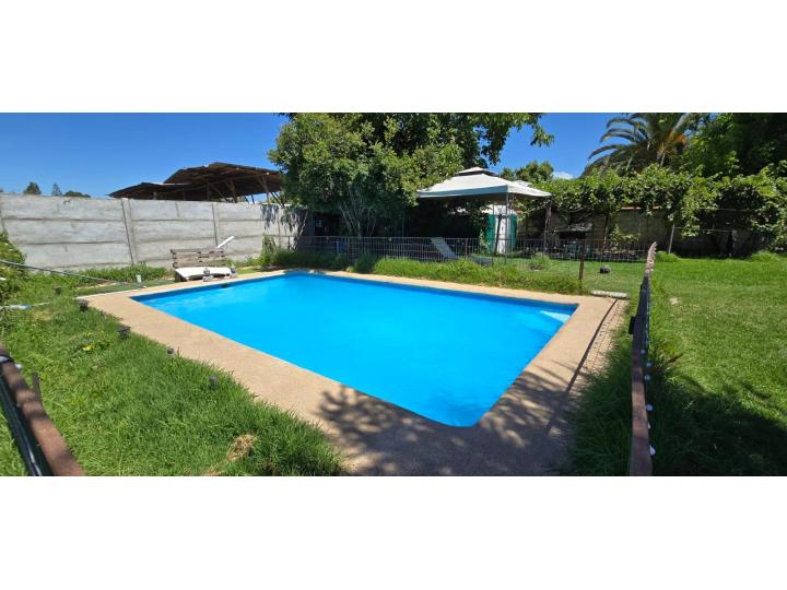 Se Vende Propiedad, de terreno de 720 m2, casa de tabiqueria de 120 m2, living, comedor, cocina, 3 dormitorios, 1 baño, antejardin y patio trasero con piscina solida de 38 m2, esta propiedad esta ubicada en el centro de la comuna , apta para vivienda y comercio ya que es una zona urbana. esta a pasos del centro y a minutos de autopista del sol.