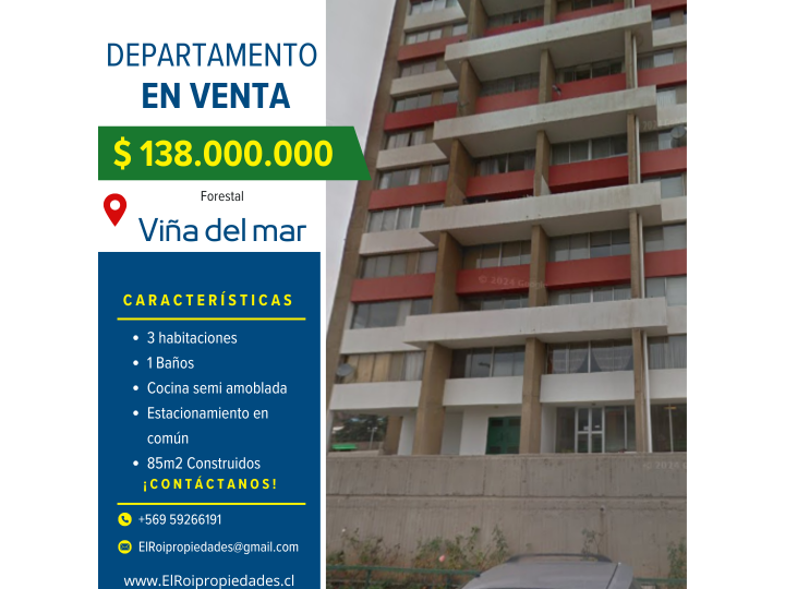 Amplio departamento en octavo piso – Forestal Viña del Mar