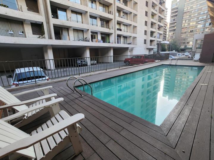 Oportunidad Se Vende departamento de 64 mt2 con 50 mt2 útiles, tiene con 2 dormitorios, 2 baños, living comedor, cocina amoblada completa y cuenta con aire acondicionado. cuenta con estacionamiento, bodega, el edificio cuenta con piscina, gimnasio, cancha de futbol, lavandería equipada y sala multiuso. esta departamento se encuentra en centro de la comuna de Santiago a pasos de comercio y locomoción, se entrega con las alfombras de los dormitorios nuevas.